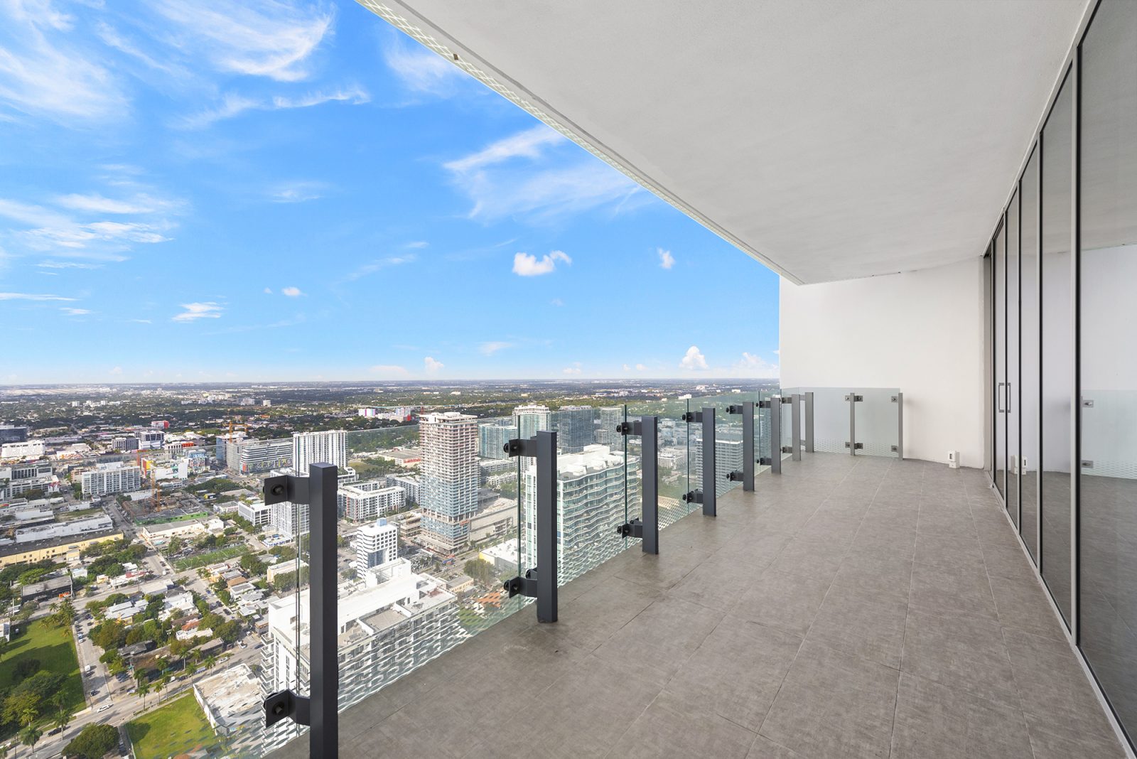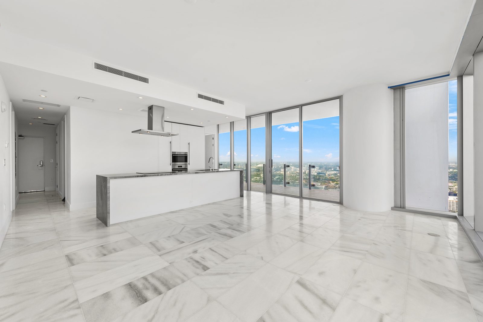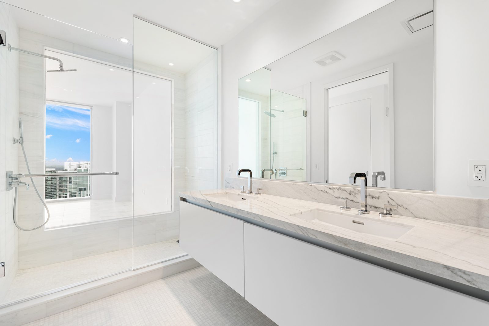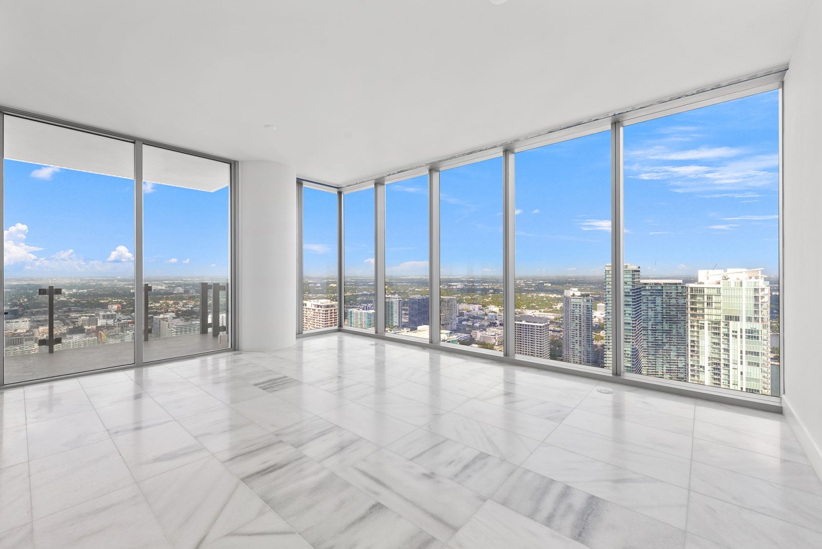 On floors 5 though 7, amenities include a bayfront lounge with a pool overlooking the water; a media room; a beauty salon; a children’s playroom; a pet spa; an expansive gym overlooking the bay; and one of Miami’s largest, resident-only spas. An outdoor bridge connects the sixth floor’s indoor amenities suite to the flow-through pool deck, which includes cabanas, an Olympic-sized lap pool, plunge pools, children’s water features, and an elevated tennis court.