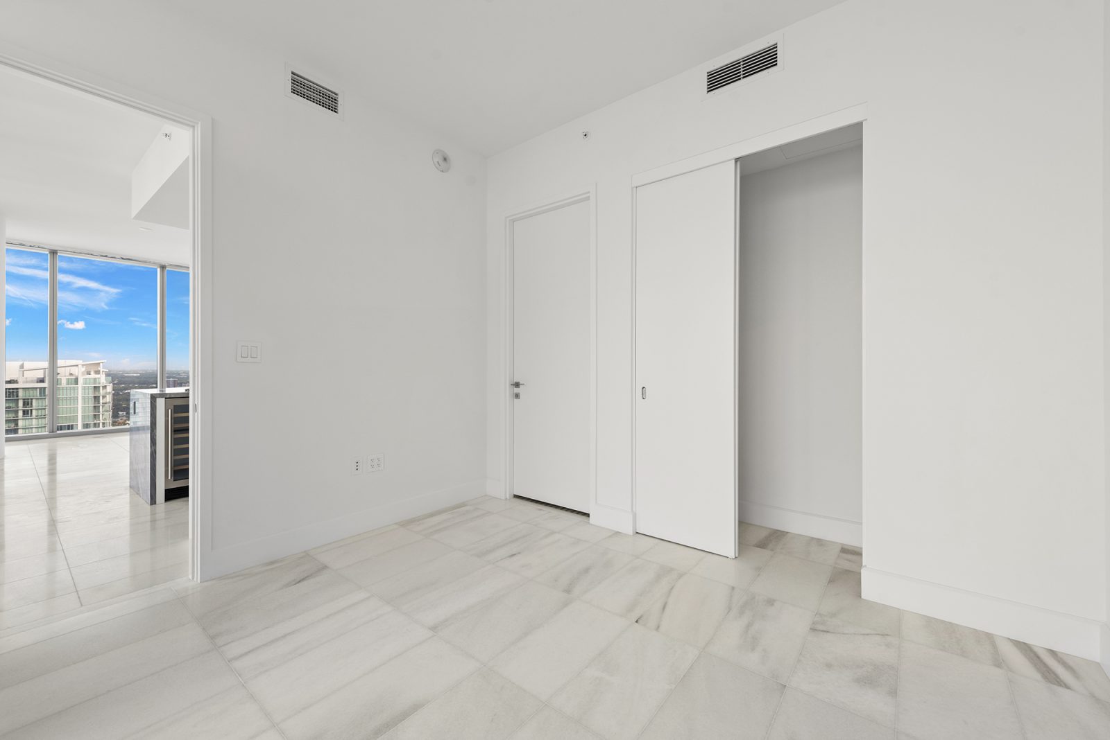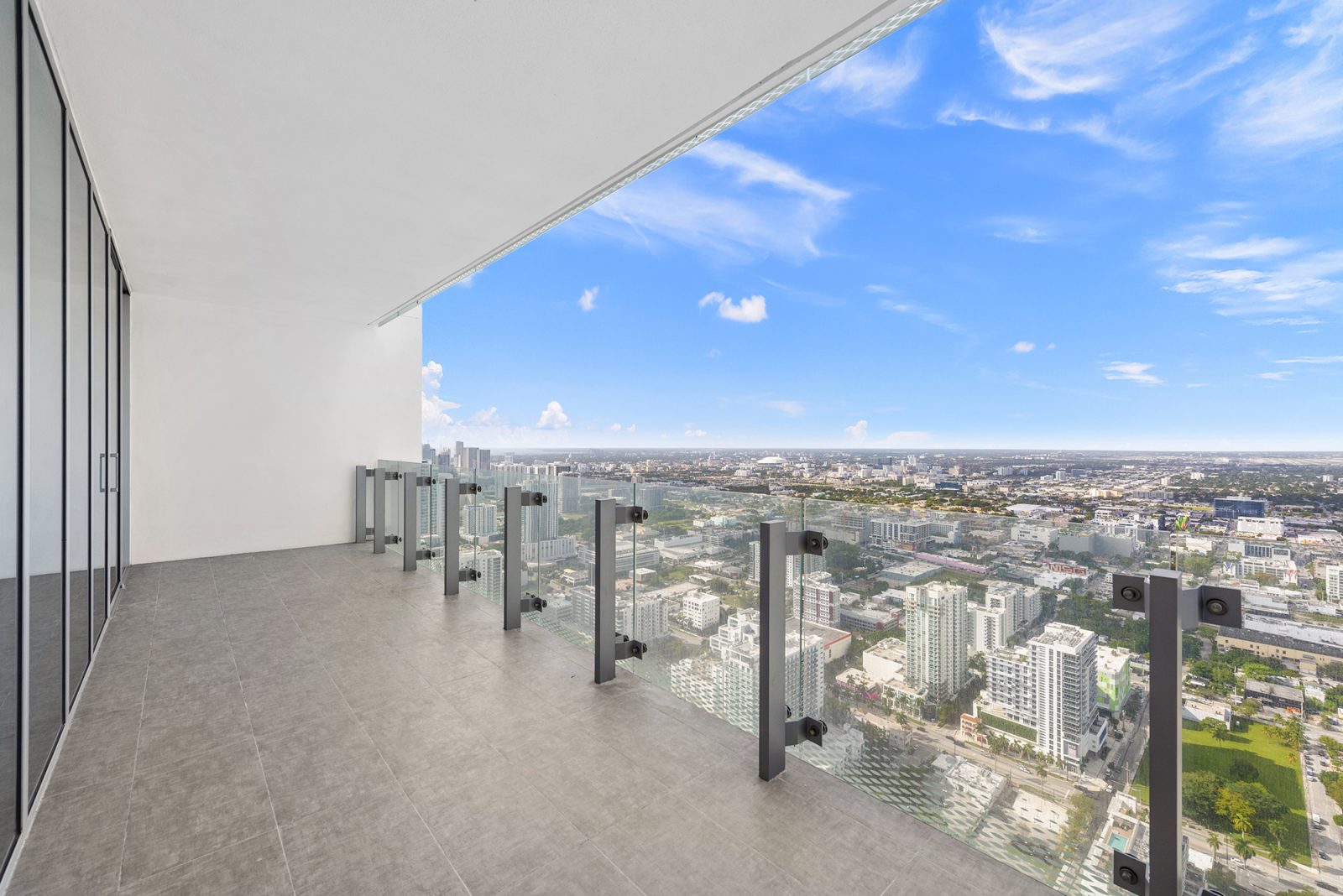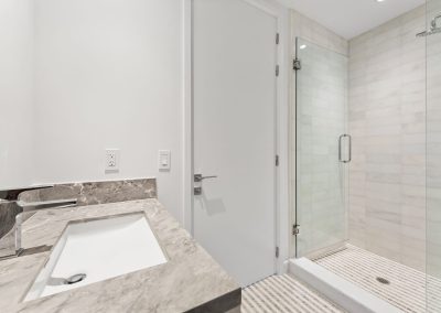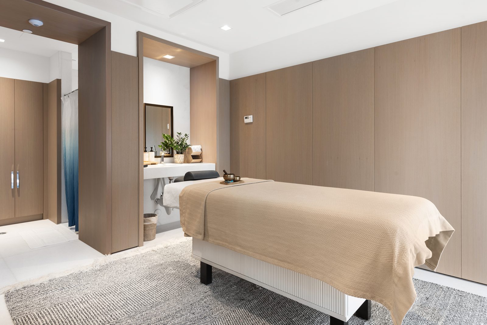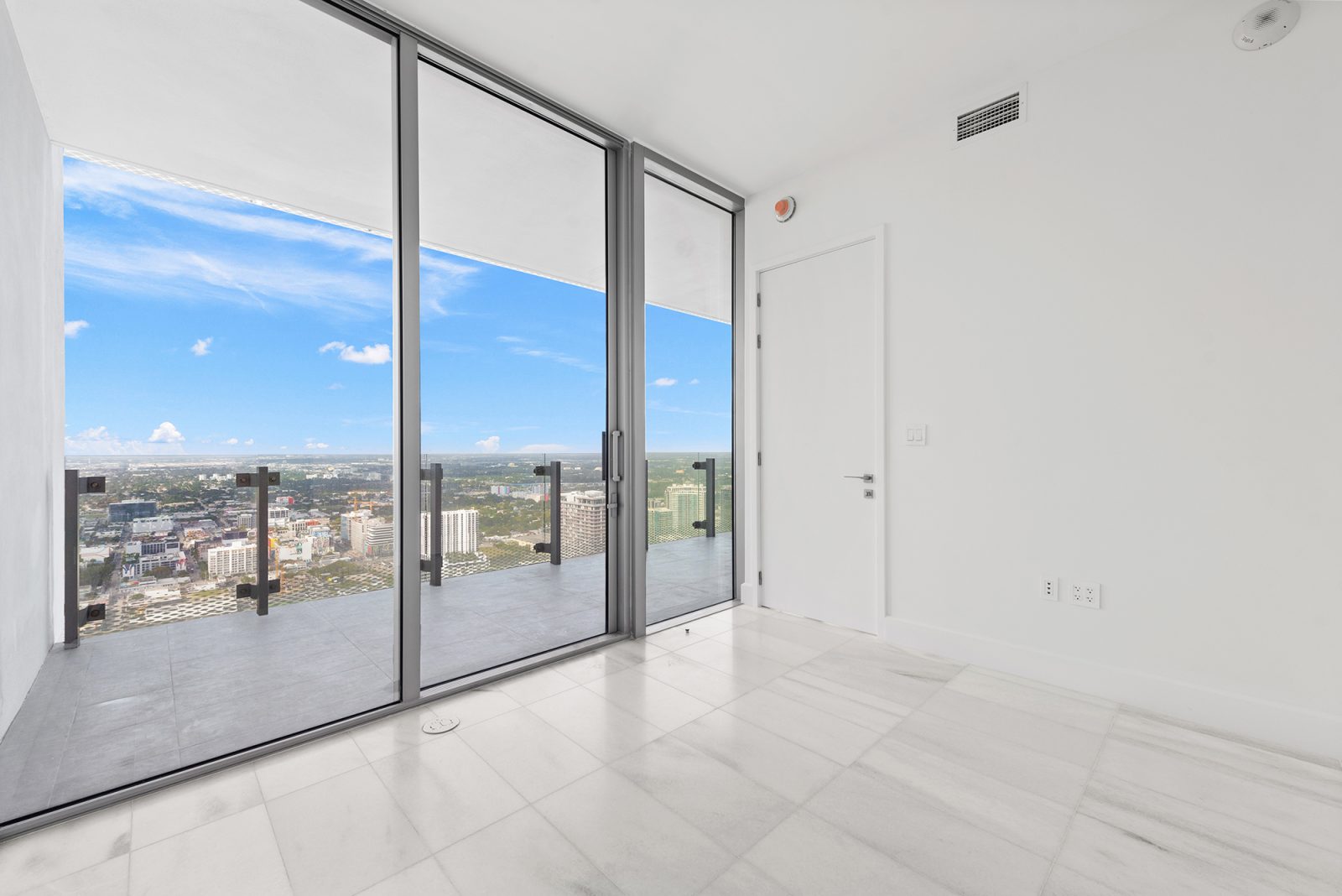On floors 5 though 7, amenities include a bayfront lounge with a pool overlooking the water; a media room; a beauty salon; a children’s playroom; a pet spa; an expansive gym overlooking the bay; and one of Miami’s largest, resident-only spas. An outdoor bridge connects the sixth floor’s indoor amenities suite to the flow-through pool deck, which includes cabanas, an Olympic-sized lap pool, plunge pools, children’s water features, and an elevated tennis court.